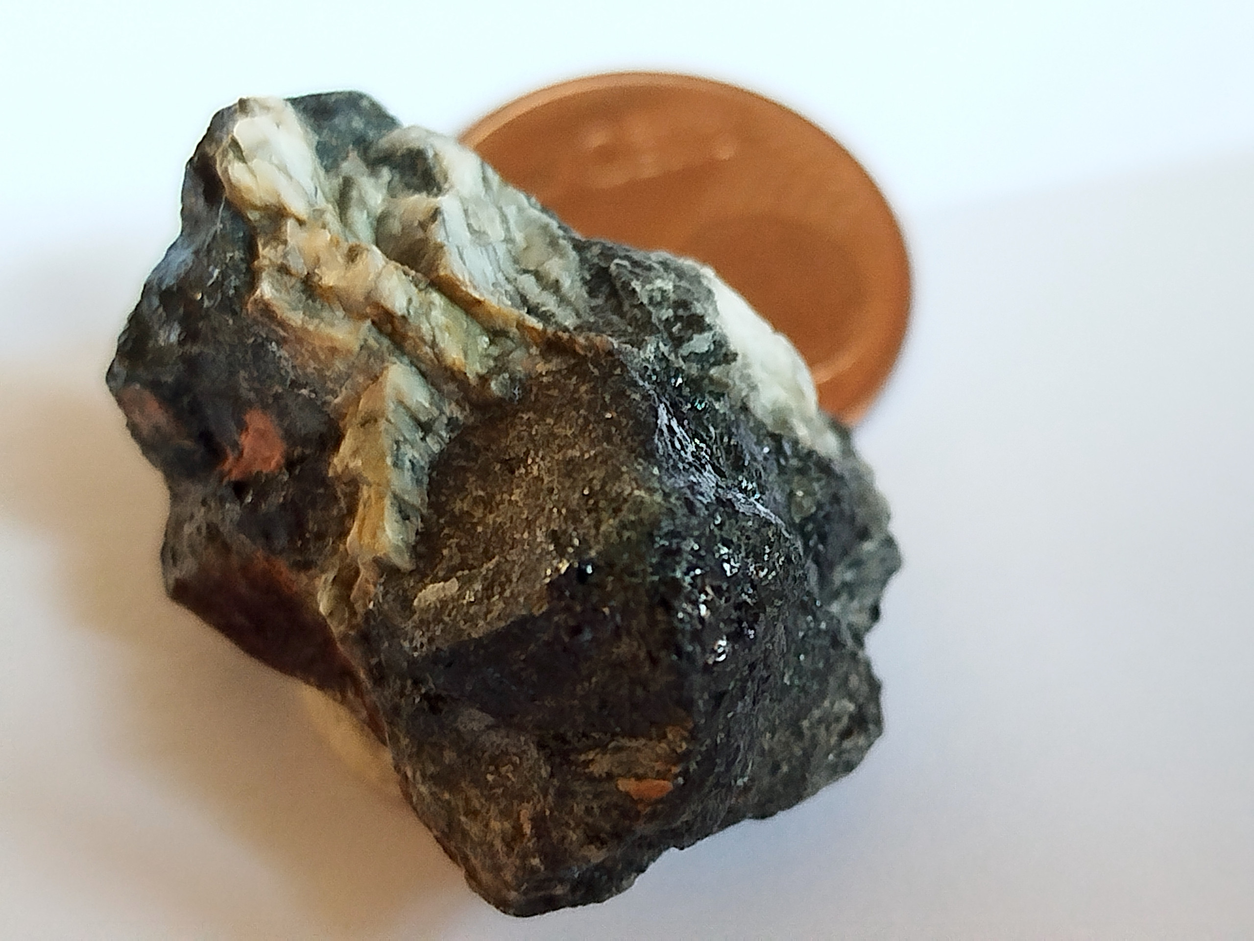 The black material in the photo shows the mineral gadolinite from a quarry in Ytterby, Sweden. The white mineral is feldspar. Gadolinite contains all 16 naturally occurring rare earth elements. Ytterby gave its name to ytterbium, yttrium and erbium, all rare earths. Gadolinite was first described in 1800 by the German chemist Martin Heinrich Klaproth.